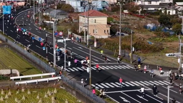 横浜上麻生道路を走るランナーを映し出すドローン映像 -