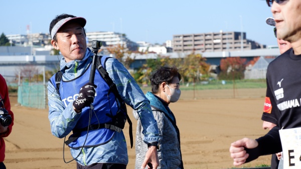 ランナーと並走しながら撮影するスタッフ -