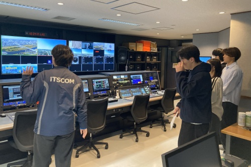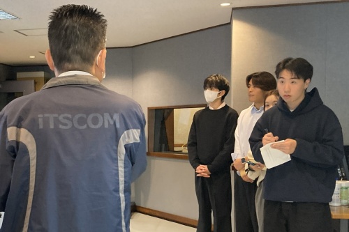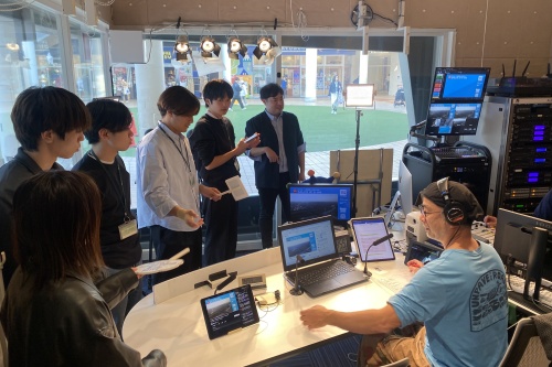 4名の学生がイッツコムのメディアセンターに来訪し、実際に制作が行われている副調整室やスタジオを見学しながら、ウェブ記事を書く記者として、イッツコム社員に質問したり、スマホで動画や写真を撮影したりする等、取材を行いました。