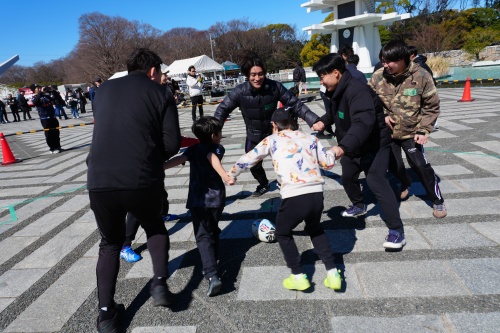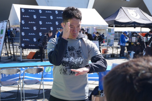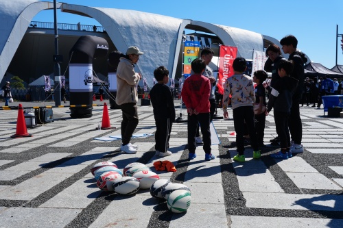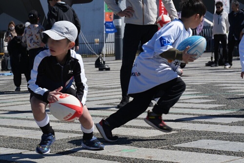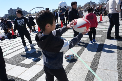 3月14日、駒沢オリンピック公園総合運動場陸上競技場でリコーブラックラムズ東京と静岡ブルーレヴズの試合が開催されました。競技場横の中央広場には、試合を盛り上げる様々なブースなどが出展され、その一つとして、iTSCOM presentsドリームコーチング「One Rugby体験会」を開催。小学生を対象に、トップアスリートの指導でラグビーとデフラグビーに触れられる機会として実施しました。
