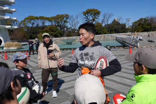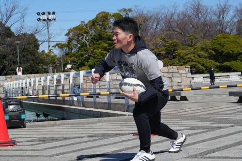 この日は、ラグビー界で活躍してきた3人のコーチが子どもたちを指導してくれました。元日本代表で現在はラグビー解説でもおなじみの大野均さん、同じく元日本代表でリコーブラックラムズ東京で選手やコーチとして活躍し、現在はリコーブラックラムズ東京のアンバサダーを務める田村広之さん、そして、デフラグビー日本代表キャプテンも務めた大塚貴之さんです。子どもたちにとって、トップレベルで活躍してきたアスリートから直接指導を受けられる貴重な機会となりました。