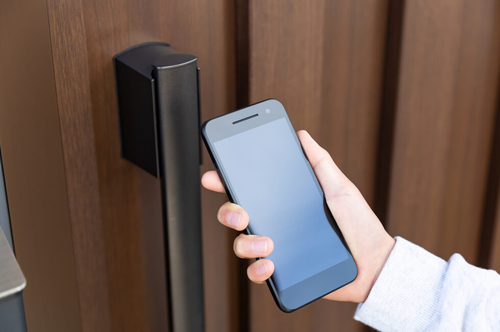 ここからは電気錠とも共通しますが、解錠方式の多様性も魅力です。スマートフォンアプリを使ったBluetooth認証やICカード、暗証番号、生体認証など、利用者の利便性に応じて複数の認証方法を組み合わせられます。また、クラウド連携によって遠隔からの施解錠や、鍵の発行・無効化を手軽に行える点もメリットです。